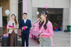 14:30,嘉賓們陸續抵達現(xian)場(chang)簽到(dao),領(ling)取專(zhuan)屬号碼牌——男生(sheng)的(de)藍色卡片與女生(sheng)的(de)粉色卡片相映成(cheng)趣,爲(wei)這場(chang)相遇埋下浪漫的(de)緣分(fēn)伏筆(bǐ)。流行民(mín)謠的(de)輕快旋律在(zai)草(cǎo)地間流轉,甜品(pin)的(de)香氣(qi)在(zai)茶歇區(qu)悄然彌漫,粉色花(huā)影與氣(qi)球輕搖,讓活動(dòng)現(xian)場(chang)的(de)每一(yi)處都氤氲着溫柔又(yòu)甜蜜的(de)氣(qi)息。